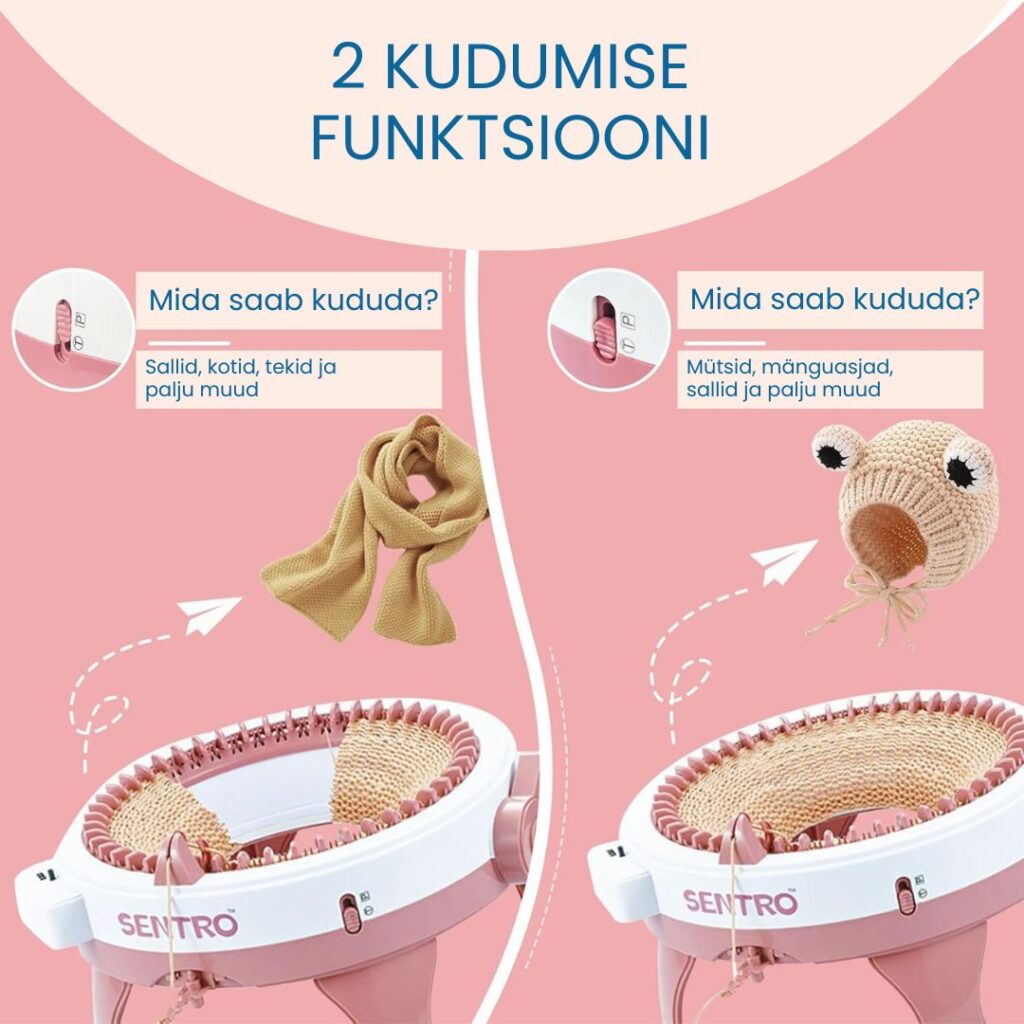 Sentro kudumismasin sobib suurepäraselt kõigile, kes soovivad kiiresti ja lihtsalt valmistada erinevaid kudumeid. Oled Sa hobikuduja või keegi, kes otsib praktilist viisi, kuidas valmistada ainulaadseid ja isikupäraseid kingitusi – see masin on loodud just Sinu jaoks! Kui Sa oled kunagi tahtnud kududa, kuid pole leidnud aega õppimiseks, siis see masin on ideaalne abivahend.